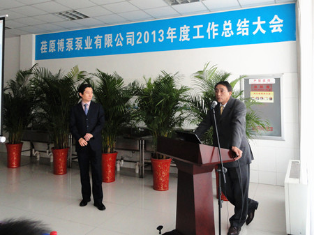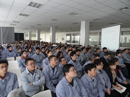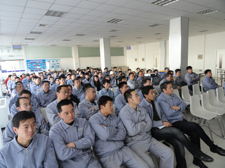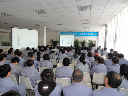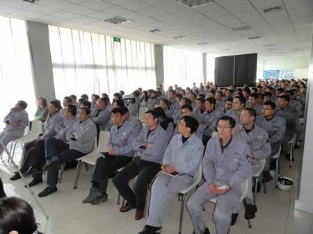 王總在講話中用詳實的數(shù)字,明晰的圖表,做了細(xì)致地分析和總結(jié)。對2012年之前的工作做了主觀和客觀的原因分析。在2013年的工作總結(jié)中,王總用成績和不足來概括:在2013的工作中,營業(yè)工作取得比較突出的成績,取得了訂單創(chuàng)新高;百萬機(jī)組項目100%容量訂單的簽訂等亮點(diǎn),特別可喜的是,在EPC印尼項目中,鍋爐給水泵、循環(huán)水泵、凝結(jié)水泵一次性簽單,這在公司歷史上乃至行業(yè)中都是很少見的。在生產(chǎn)方面:發(fā)貨臺數(shù)創(chuàng)公司歷史之最;車間5S管理取得良好進(jìn)展;產(chǎn)品不合格率得到有效控制。在其他方面:公司采購引入比價采購環(huán)節(jié),降低采購成本;C型泵的改善方面,提高采購批量,降低采購價格,滿足生產(chǎn)各環(huán)節(jié)的需要。不足之處:營業(yè)方面行業(yè)訂單結(jié)構(gòu)不平衡;生產(chǎn)環(huán)節(jié)中生產(chǎn)秩序的保證、外購件的合格率以及設(shè)計出圖的時間有待改善;ERP環(huán)節(jié)錄入數(shù)據(jù)的及時性、準(zhǔn)確性方面還有待提高等等。